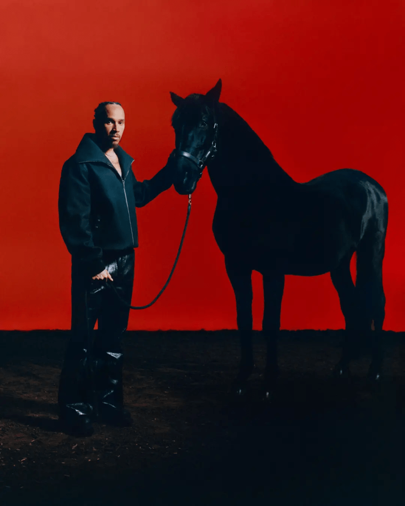 Hamilton se viu pela primeira vez em um terno da Ferrari no banheiro, quando ele estava lavando as mãos e olhou para o espelho. “Estou de vermelho, tipo, uau!”, ele diz. Ele parou por um momento para apreciar o reflexo. Ele gostou do que viu. “O terno ficou tão bem em mim”, diz Hamilton, rindo. Quando ele se sentou no cockpit da Ferrari pela primeira vez, ele fechou os olhos quando o motor ligou e sorriu. “As vibrações são diferentes”. Ele as deixou percorrer seu corpo. “Você só quer saber como é isso”. Agora ele sabe. “É um momento muito, muito especial”