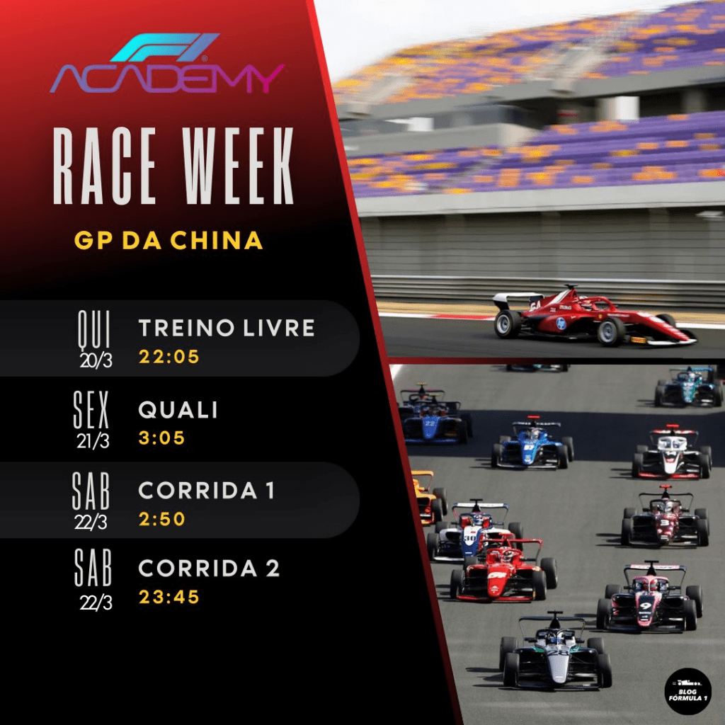 Deixamos aqui abaixo também os horários da F1 Academy, que teá transmissão da Bandsports na TV fechada. Também disponível na Bandplay.