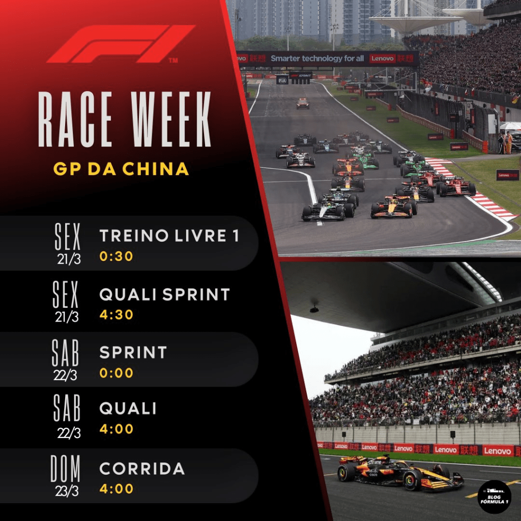 E é race week DE NOVO! Após uma corrida caótica de estreia dessa temporada da F1 2025, na Austrália, pilotos e equipes viajam direto para Xangai, palco da segunda etapa do calendário: E sim, mais uma vez de madrugada para nós no Brasil.