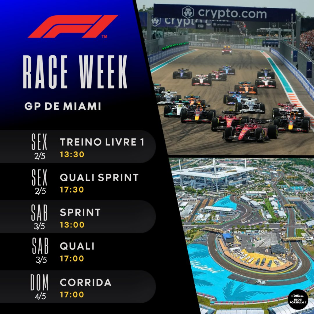 Nesse post você confere todas as informações necessárias para ficar por dentro de tudo o que vai rolar nesse fim de semana do GP de Miami de Fórmula 1!
