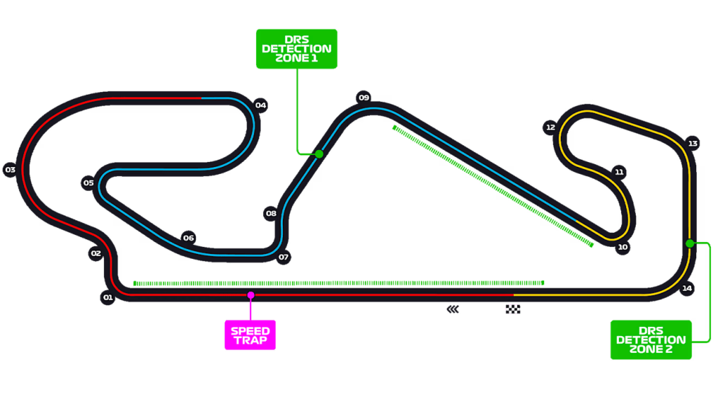 O GP da Espanha é realizado no tradicional circuito de Catalunya. Serão 66 voltas no traçado de 4,657 km, que conta com 14 curvas e duas zonas de ativação do DRS (Drag Reduction System).