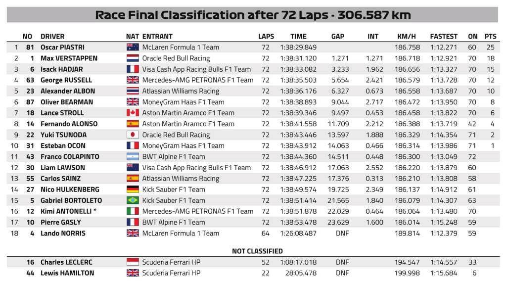 Oscar Piastri conquistou o primeiro Grand Chelem da carreira numa corrida que certamente ficará entre as melhores da temporada onde Tivemos DE TUDO: Batida de Hamilton, abandono de Norris, acidente entre Antonelli e Leclerc, pódio de Hadjar, além de imagens que já viraram meme instantâneamente. Foi demais!