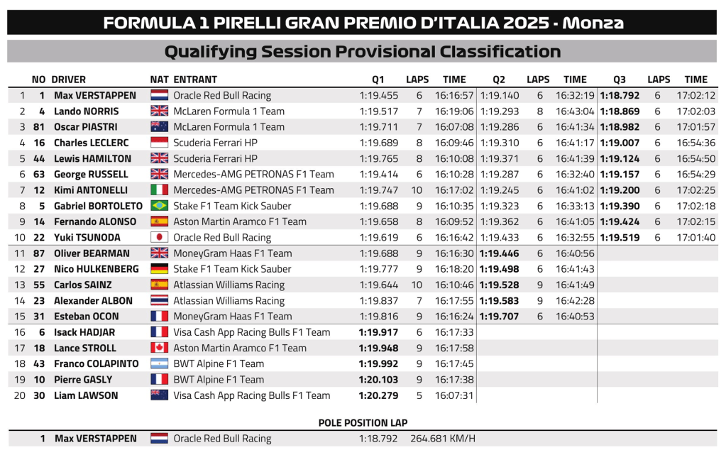 Contrariando todas as previsões, o tetracampeão mundial Max Verstappen tirou a pole da favorita McLaren e, de quebra, estabeleceu dois novos recordes: A volta mais rápida da história de Monza e a volta mais rápisa (em média de velocidade) da história da F1. Ele é INEVITÁVEL!