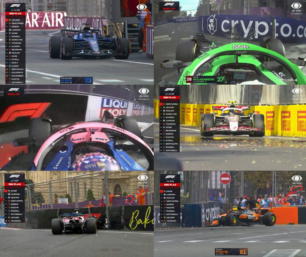 Baku é um dos circuitos mais difíceis do campeonato e hoje vimos mais uma prova disso: Em uma sessão de classificação simplesmente insana, tivemos seis (!) batidas e seis bandeiras vermelhas, sol, chuva e muita emoção. No final, Max Verstappen provou porque é tetracampeão: Pole Position sensacional, a sua sexta no ano, mais do que qualquer outro piloto na temporada.