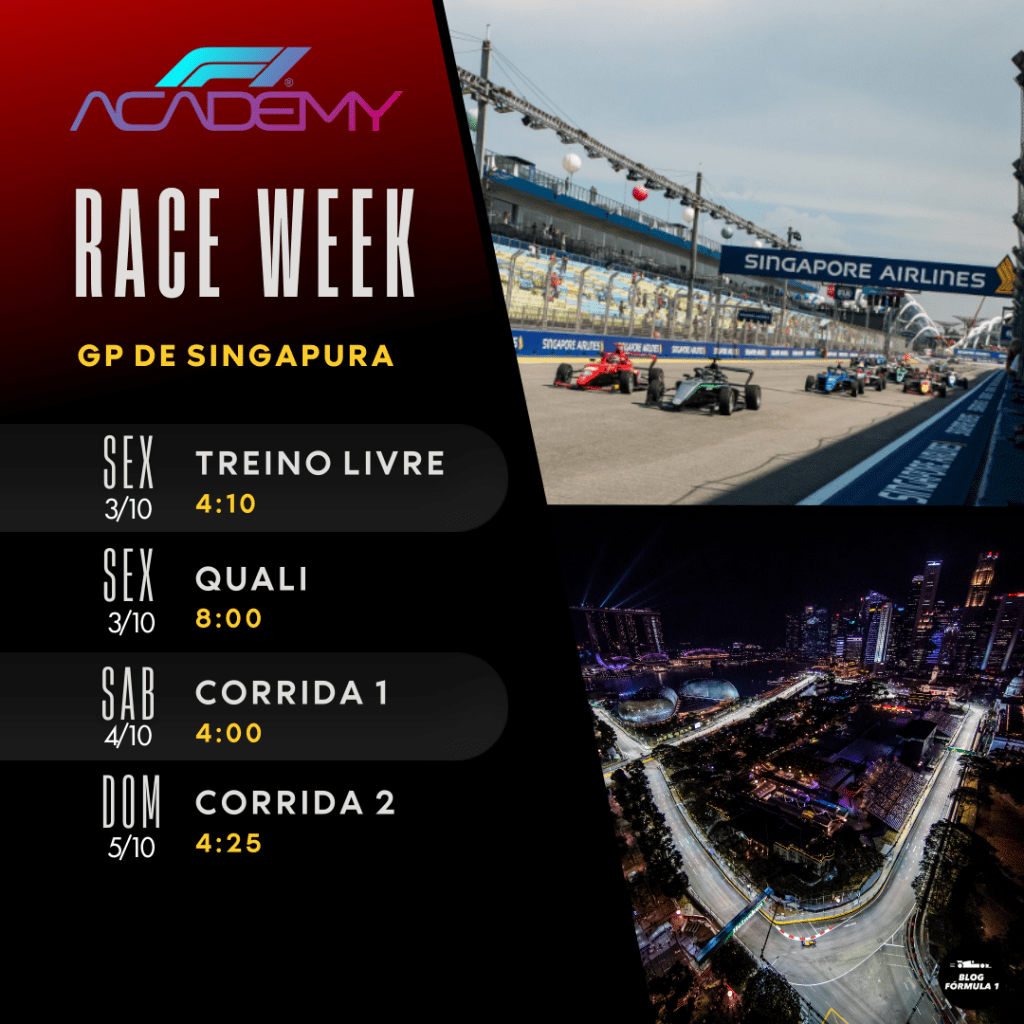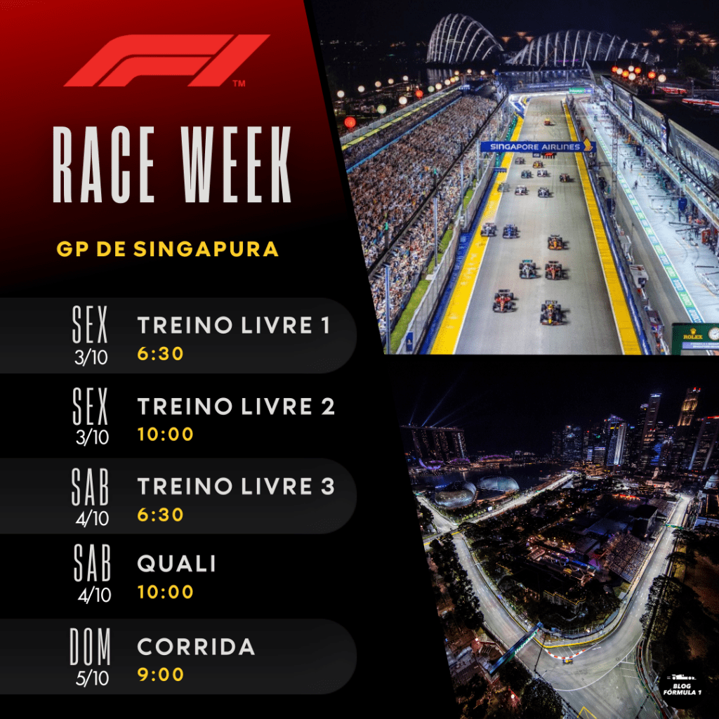 Nesse post você confere todas as informações necessárias para ficar por dentro de tudo o que vai rolar nesse fim de semana do GP de Singapura de F1.